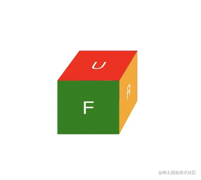 一个立方体由六个面组成,分别使用 Up,Down,Left,Right,Front,Back 的首字母进行表示。使用 html 描述它的结构如下