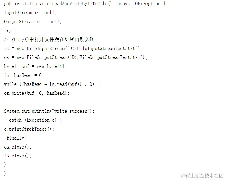 3.用字节流读写文件。使用字节流读媒介,对应的流是 InputStream 和OutputStream,并且媒介对象是文件,所用到子类是 FileInputStream 和 FileOutputStream,这里还可以通过BufferedInputStream 用缓冲流来读取文件。