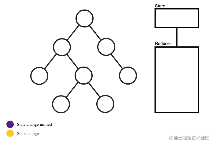 应用的state统一放在store里面维护,当需要修改state的时候,dispatch一个action给reducer,reducer算出新的state后,再将state发布给事先订阅的组件。