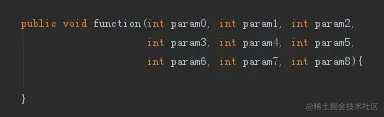 如上图,就是一个参数太多的情况。这里的建议就是把这些相同属性的param参数,整合成一个Param对象,这些param参数就是这Param对象中的属性,然后这函数只需要调用Param对象即可。