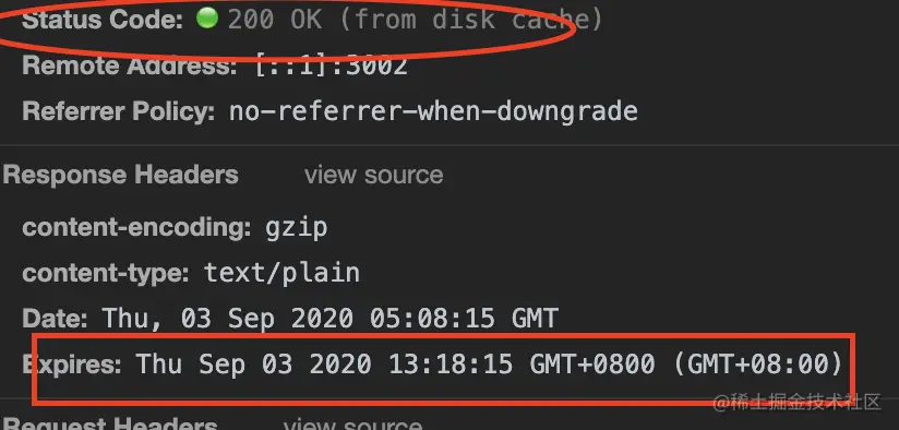 在没有禁用缓存并且没有超过有效时间的情况下,再次访问这个资源就命中了缓存,不会向服务器请求资源而是直接从浏览器缓存中取。