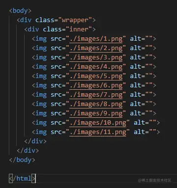 - html的内容如下,一共请求了11张图片,然后启动一个本地服务(我用的是anywhere)