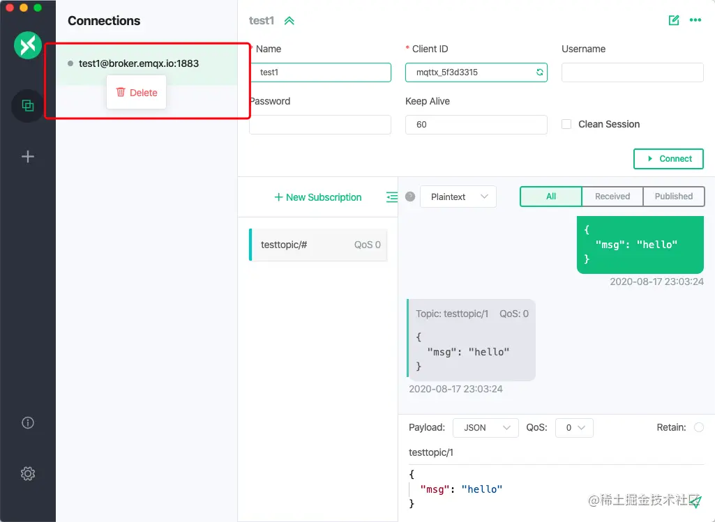 MQTT X 是由全球领先的开源物联网中间件提供商 EMQ 开源的一款跨平台 MQTT 5.0 桌面测试客户端,它支持 macOS,Linux,Windows。MQTT X 的用户界面借助聊天软件的形式简化了页面的操作逻辑,用户可以快速创建多个同时在线的 MQTT 客户端,方便测试 MQTT/TCP、MQTT/TLS、MQTT/WebSocket 的连接/发布/订阅功能及其他 MQTT 协议 特性。