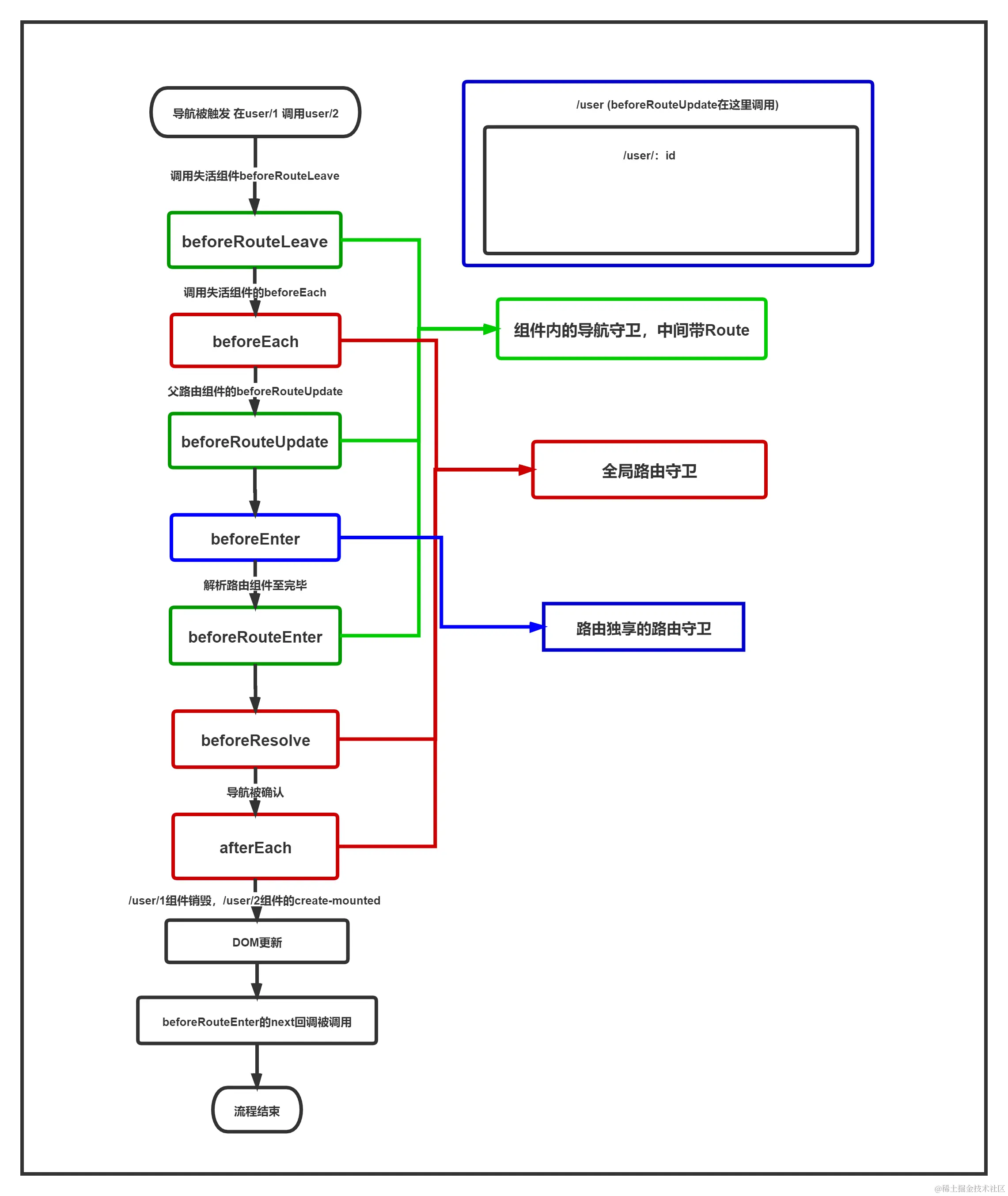 一图看懂vue-router导航守卫触发顺序 蓝思绪 2020-09-03 379 阅读1分钟 用processon 画了一张vue-router的导航守卫触发顺序的图,方便复习与记忆,图片可能不是很清晰,源地址请戳