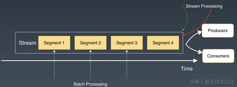 基于 Segmented Stream 存储的表征,我们很容易区分和支持批处理和流处理。批处理所请求的数据可以看做是一个有边界的流(Bounded Stream)。流处理所请求的数据可以看做是一个没有边界的流(UnBounded Stream)。