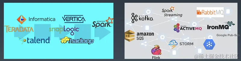 在存储层,批处理常使用 HDFS 和网络对象存储等;流处理常使用 Kafka 或其他的消息系统。