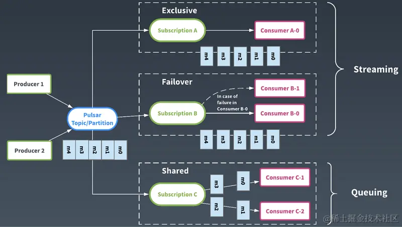 Pulsar 灵活的订阅模式和高带宽、低延迟特性,能够很好的满足流处理的需求。