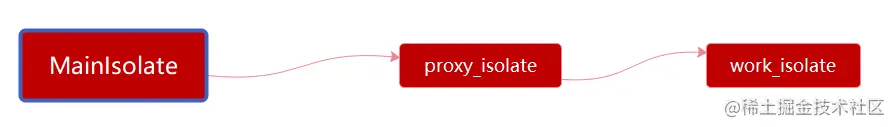 proxy isolate : 子线程 负责接收主线程的指令,并下发给work isolate