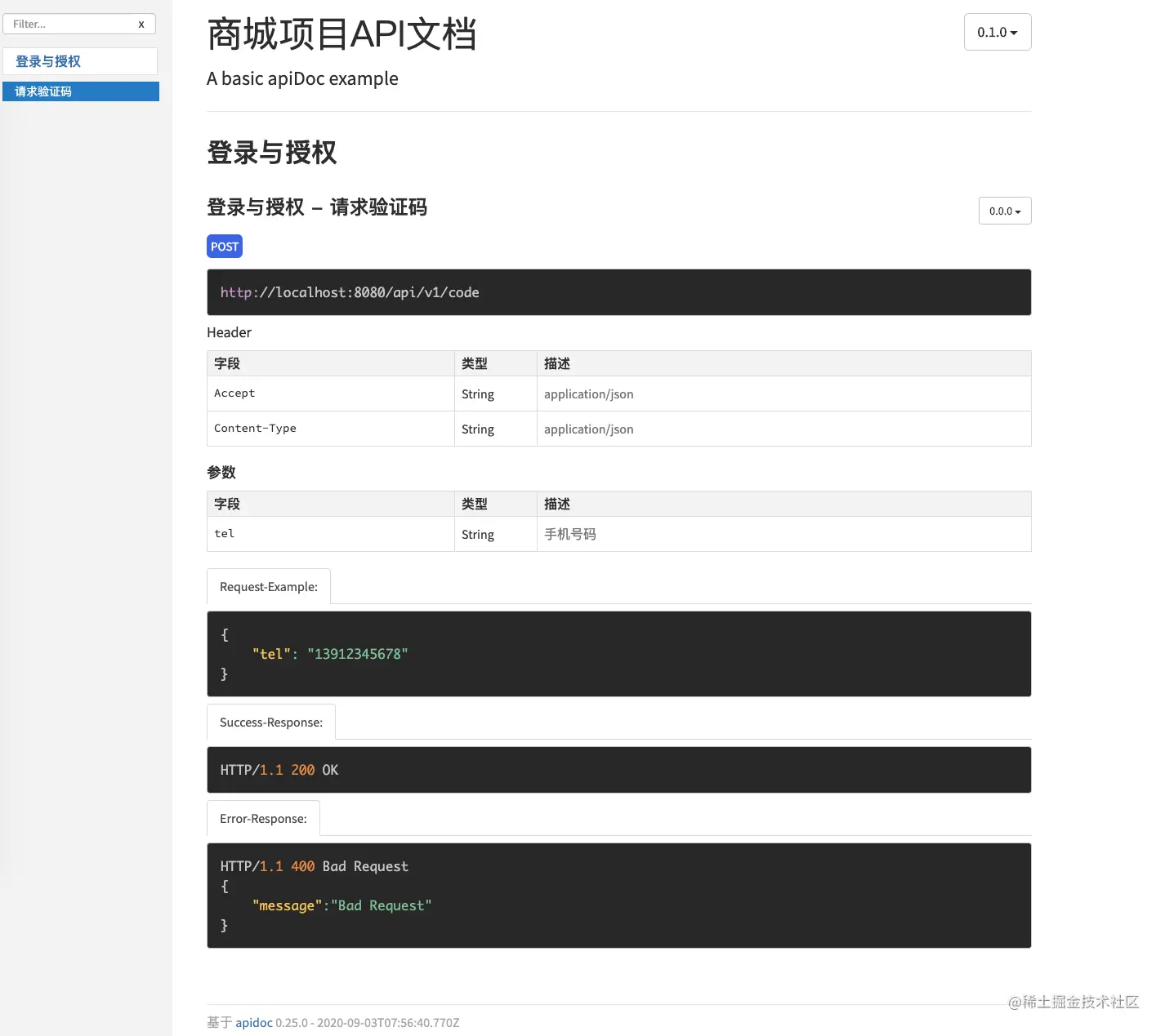 文档是使用的apiDoc