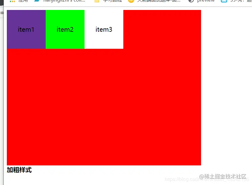 如果所有项目的flex-shrink属性都为1,当空间不足时,都将等比例缩小。如果一个项目的flex-shrink属性为0,其他项目都为1,则空间不足时,前者不缩小。负值对该属性无效。