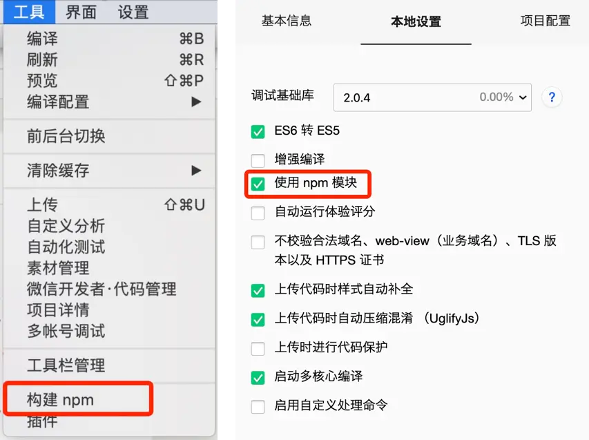 打开微信开发者工具,点击 工具 -> 构建 npm,并勾选 使用 npm 模块 选项,构建完成后,即可引入组件