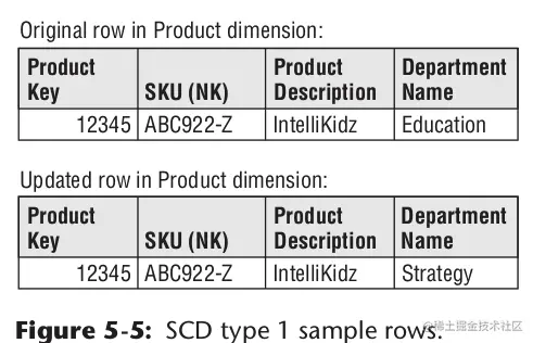 直接将维度表对应变化字段的值进行修改。这会导致事实表中的老数据,关联维度表,也获取到了新值,使得报表结果出现变化,已经预计算的OLAP Cube需要重新计算等问题。所以慎用这种方式。举例如下: