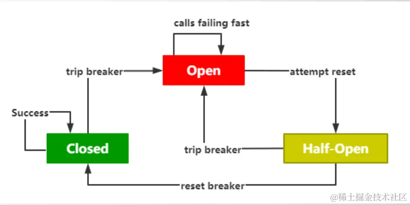 * 10秒之内,发起至少5次请求,然后有至少50%的错误率,就会熔断5s