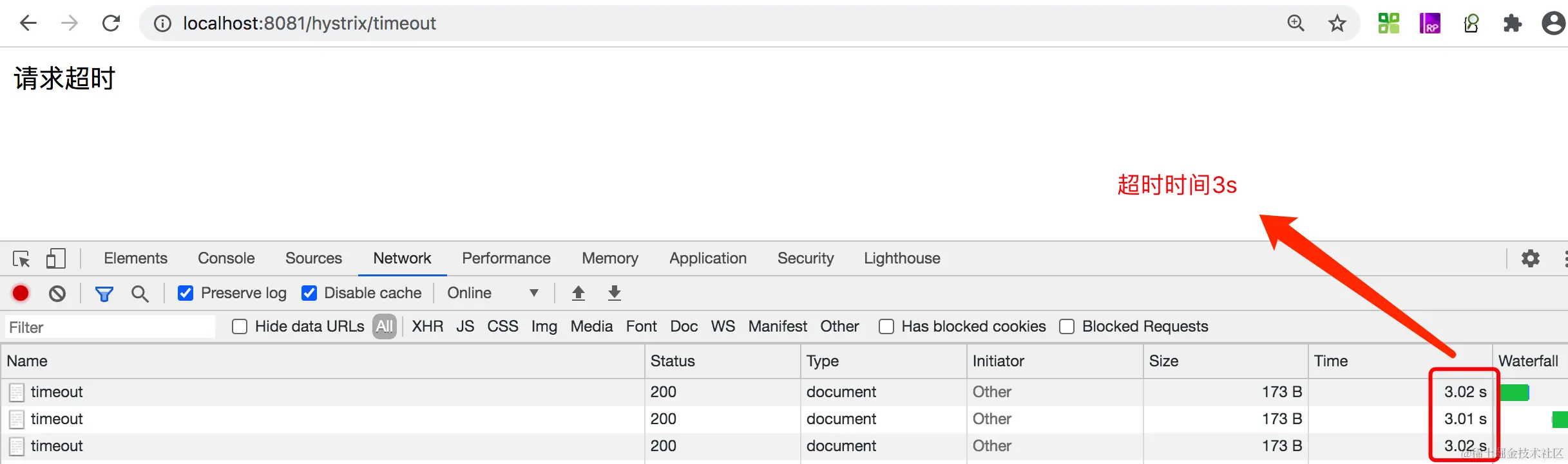 * 如果是http://localhost:8082/orders的逻辑中处理时长超过3s,才会真正的去等待3s,超过3s后才会出现 请求超时.