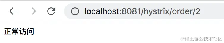 然后过了几秒,请求http://localhost:8081/hystrix/order/2又恢复了正常(熔断有一个自动恢复)。如下: