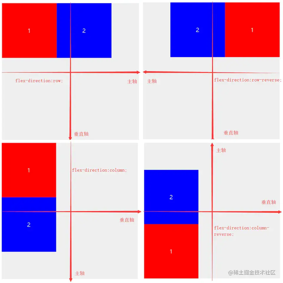| flex-direction | 决定主轴的方向(即项目的排列方向) |