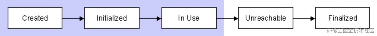 在JDK1.2之前,一个对象的生命周期可以用下图简单表示,(图来自www.kdgregory.com/index.php?p… 这篇文章墙裂推荐,后续也会提到,我们暂时先放着)