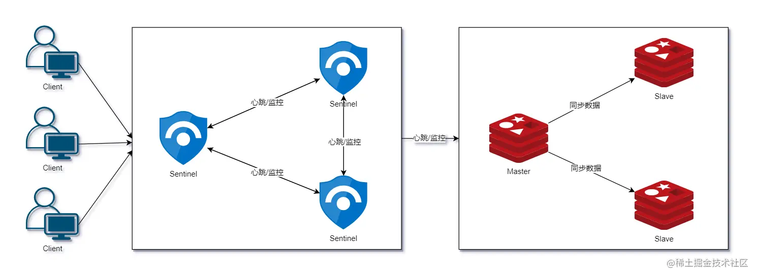 PING操作(监控),这是一个心跳检测,是失败判定的依据。 - 每 2 秒每个 Sentinel 通过 Master 节点的 channel 交换信息(Publish/Subscribe);