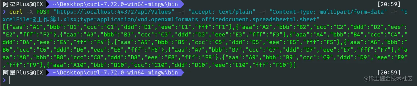 先准备一个Excel文件,将其内容读取出来,并序列化成JSON字符串进行返回。