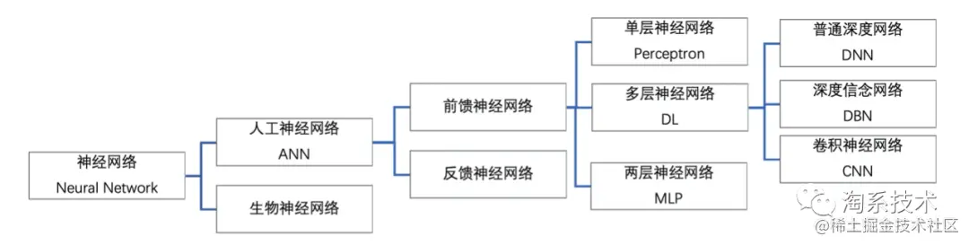 目前,神经网络根据工作原理可以分为人工神经网络和生物神经网络,在计算机领域中,人工神经网络的原理是利用计算机模拟大脑的工作方式。下图2.2展示了神经网络主要类别,本文的DCGAN模型就是基于多层神经网络CNN实现的。