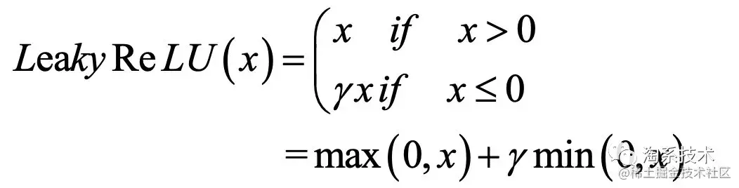如图3.4所示,当小于0时,给增加一个斜率,取值一般较小,避免了ReLU在负半轴训练时停滞的问题。