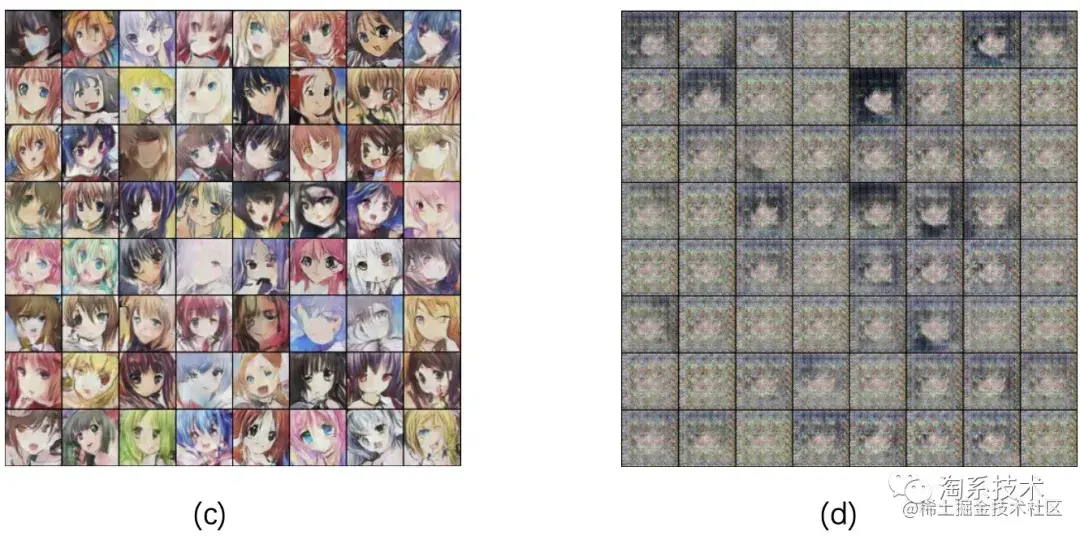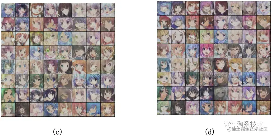 解决方案2: 将训练次数比例和学习率结合,动态调整。判别器训练效果太好,会导致生成器反向调整参数,生成一些已经被识别为“真”的样本,特殊情况下,还输出许多面部特征畸变的图像,导致样本缺乏多样性和准确性。根据Loss函数,查看损失值突变的训练周期,可以按照周期来动态调整生成器或判别器的学习率或训练次数,例如,每经过10个训练周期,将生成网络或判别网络的学习率递减为原来的1/2。