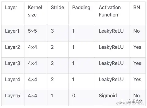 表3.2 DCGAN判别模型层次结构