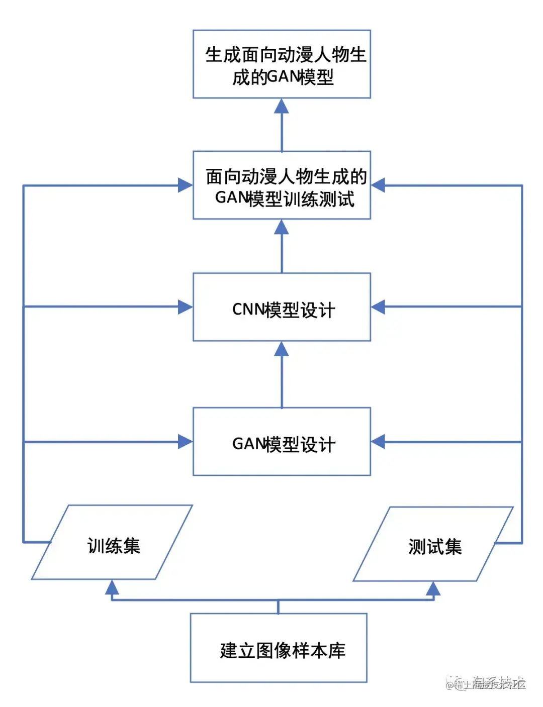 将多组实验结果进行对比分析,可得到一组最优网络参数,利用训练好的目标网络模型,便可输出多张不同的动漫图像,技术路线如图1.3所示: