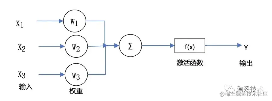 结合图2.1来看,神经元的输入输出关系用有向箭头来表示,输入信号可以用Xi表示,输出用Y来表示, Wi表示权重。多个神经元可以通过设定的连接关系组合成为神经网络。