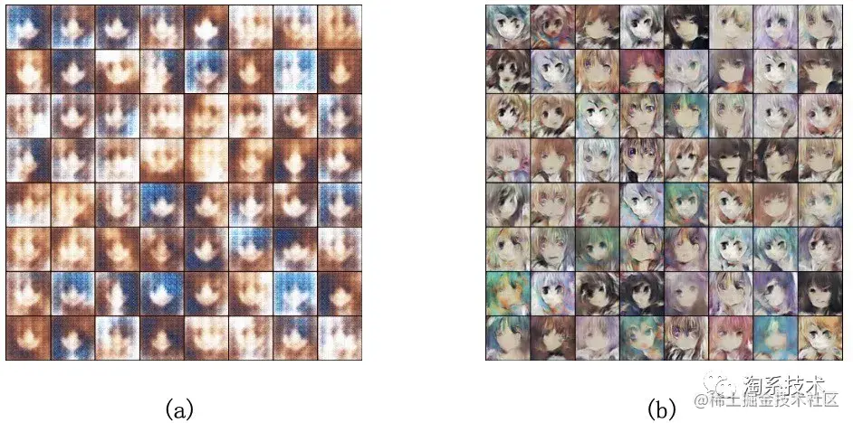 (2)生成图像质量较差,有畸变、模糊、模式崩溃等现象。