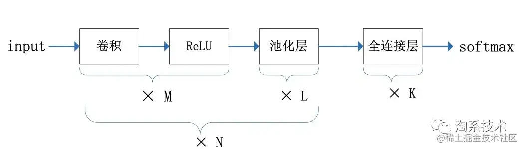 卷积神经网络(convolutional neural network,CNN)是指至少在网络的一层中使用卷积运算来代替一般的矩阵乘法运算的神经网络[18]。第一个卷积神经网络是Alexander Waibel在1987年提出的时延神经网络(TDNN),但是直到2012年ImageNet竞赛之前,CNN才重新走进人们的视野。目前常用的CNN结构是由多个卷积层、池化层、全连接层组合构成的。如图 2.5 所示