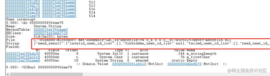 字符串1GB + 未回收内存3GB + 其他 林林总总 约等于 6G,差不多。下面我们重点追查一下这个字符串是怎么回事。