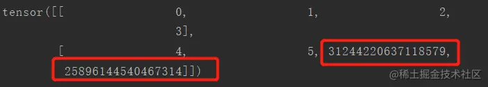 这是因为b的第一个元素和a的第一个元素内存地址相差了16个字节,因为默认的tesnor是int64,也就是8个字节一个元素,所以这里相差了2个整形元素