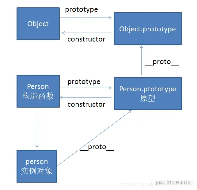 每个实例对象( object )都有一个私有属性(称之为 proto )指向它的构造函数的原型对象(prototype )。该原型对象也有一个自己的原型对象( proto ) ,层层向上直到一个对象的原型对象为 null。根据定义,null 没有原型,并作为这个原型链中的最后一个环节。