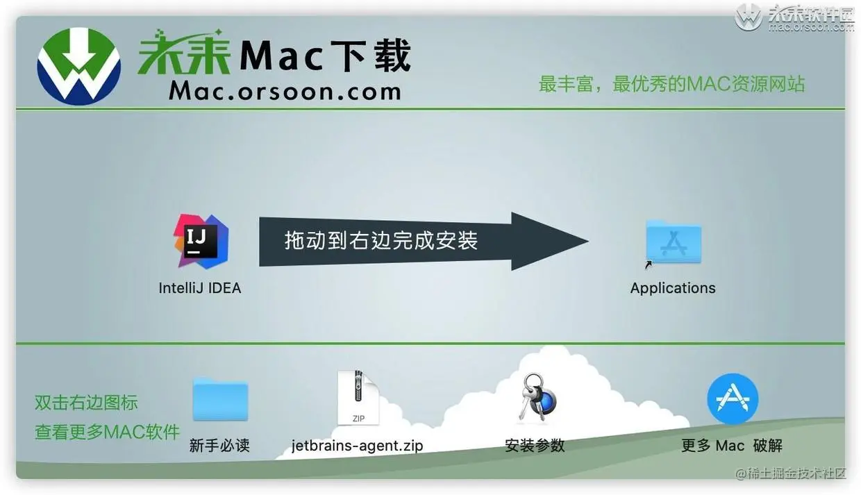 intellij idea 2020最新版下载完成后打开,拖动「IntelliJ IDEA」到右侧蓝色文件夹上等待安装完成即可。