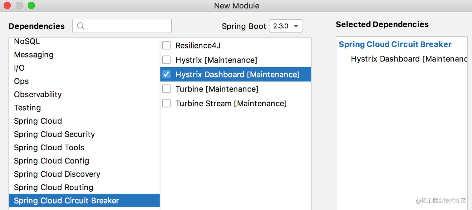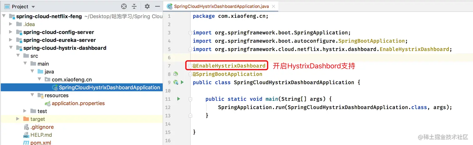 关于熔断降级的hystrix提供了一个dashboard可以直接查看,现在创建spring-cloud-hystrix-dashboard项目