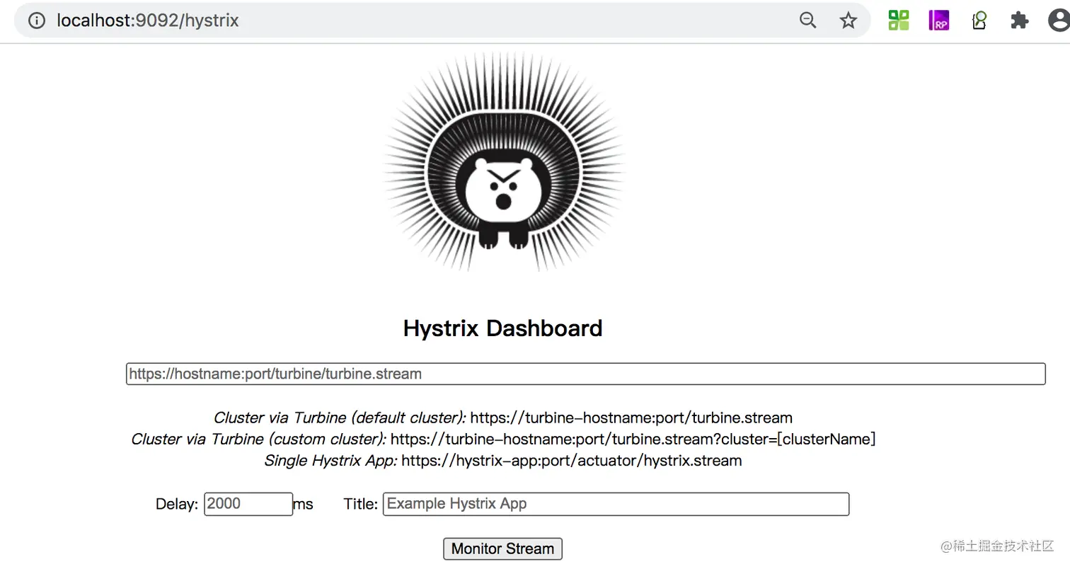 配置端口:9092,启动成功后,访问:http://localhost:9092/hystrix