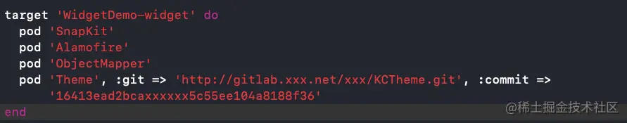 在实现widget的时候可能会用到一些三方库(或者自己的私有库),那么我们如何在widget里面导入三方库呢?其实和普通的项目几乎无差别,我们widget是我们创建出来的一个target,所以我们只需要在podFile文件里面声明一下就可以了