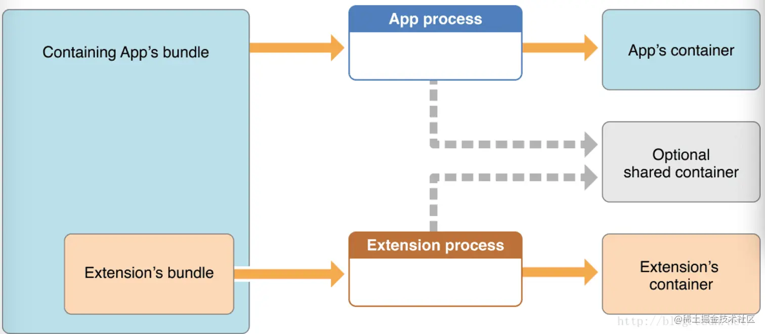 不能直接和主App数据共享,只能通过App Groups进行,所以需要在Capabilities里面勾上App Groups