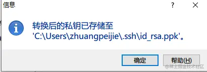 然后选中自己的私钥,会提示转换格式,确定,保存就好