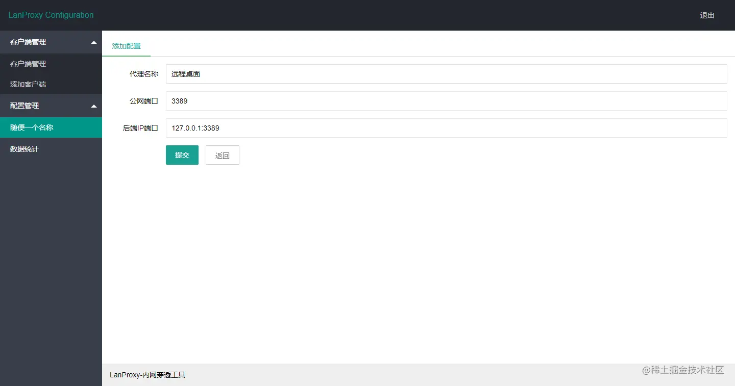 GitHub原文介绍:lanproxy是一个将局域网个人电脑、服务器代理到公网的内网穿透工具,支持tcp流量转发,可支持任何tcp上层协议(访问内网网站、本地支付接口调试、ssh访问、远程桌面...)。目前市面上提供类似服务的有花生壳、TeamView、GoToMyCloud等等,但要使用第三方的公网服务器就必须为第三方付费,并且这些服务都有各种各样的限制,此外,由于数据包会流经第三方,因此对数据安全也是一大隐患。