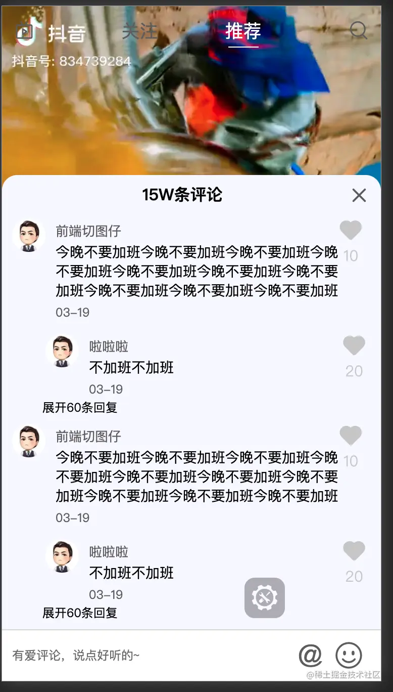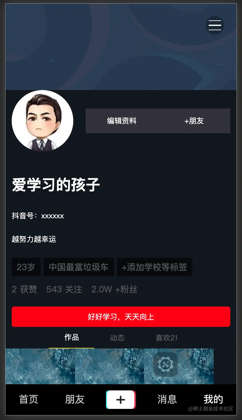 在平时的前端开发中,我们更多的是完成螺丝钉的角色,即在公司的前端框架下,实现各种业务逻辑,Vue技术栈并不是难点所在,难点往往在于从 0 到 1 搭建一个完整的实践项目,本项目带领读者开发媲美原生抖音APP的webApp,使用vue.js作为此项目的技术栈,通过项目脚手架搭建、数据mock、架构设计、代码编写、编译打包,使读者了解前端开发全流程。项目中的代码规范致力于编写高可维护,易于扩展的前端高质量代码。 项目中视频自动播放、上拉播放、下拉播放是本项目的亮点,h5调用手机端摄像头实现 视频采集 更是亮点中的亮点