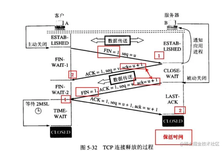 第二,防止类似与“三次握手”中提到了的“已经失效的连接请求报文段”出现在本连接中。客户端发送完最后一个确认报文后,在这个2MSL时间中,就可以使本连接持续的时间内所产生的所有报文段都从网络中消失。这样新的连接中不会出现旧连接的请求报文。
