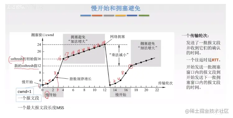 这部分要多看看,一个报文段长度! 下面的单位是一个RTT 传输轮次