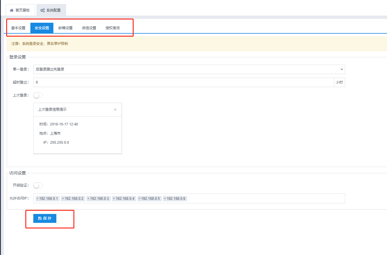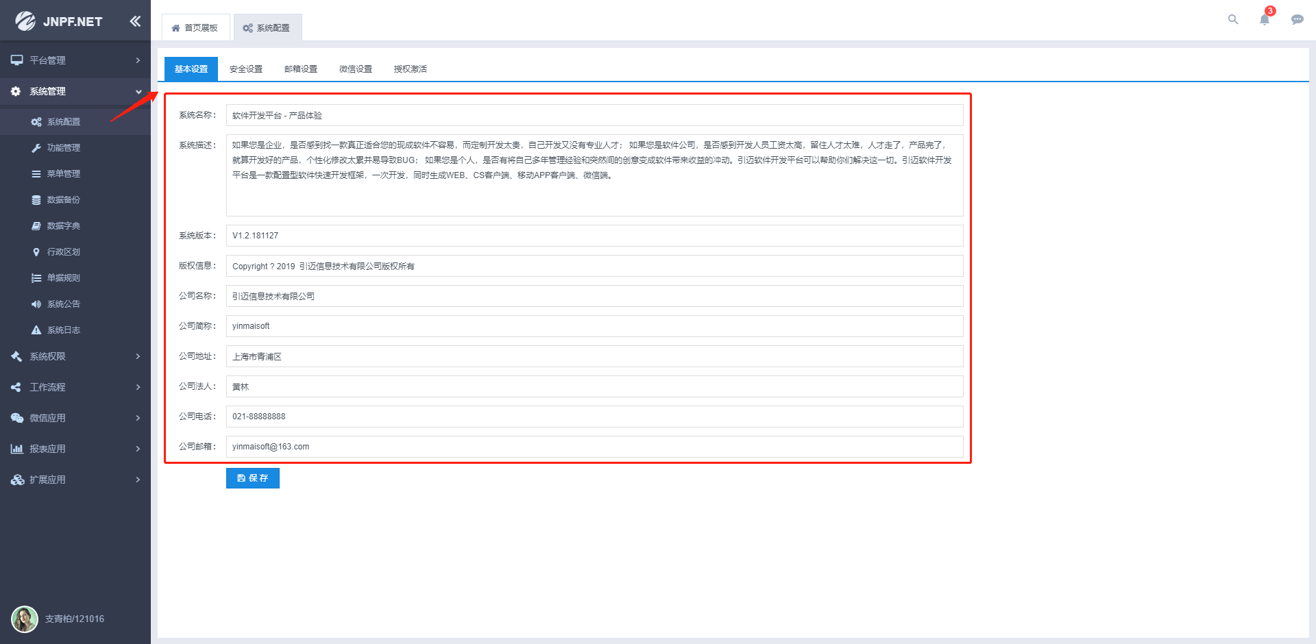 步骤2:依次填写安全设置、邮箱设置、微信设置等;