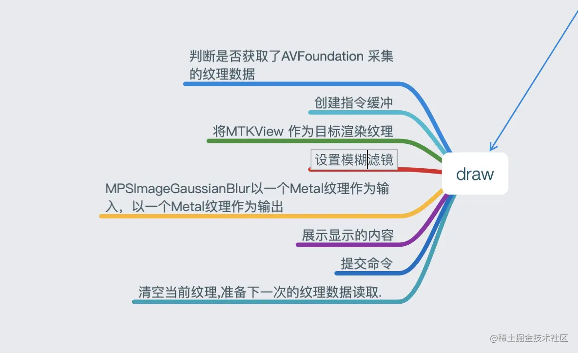 Metal提供了一个MetalPerformanceShaders库,里面有一些滤镜效果,MPSImageGaussianBlur高斯模糊是其中之一 - 已当前纹理作为滤镜的输入,已目标纹理作为滤镜的输出