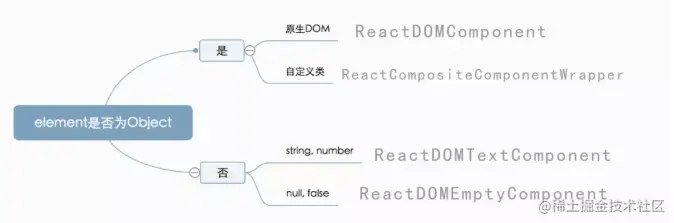 - string,number则为ReactDomTextComponent