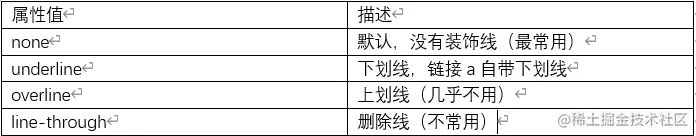 text-decoration属性规定添加到文本的装饰,比如下划线、删除线、上划线等。