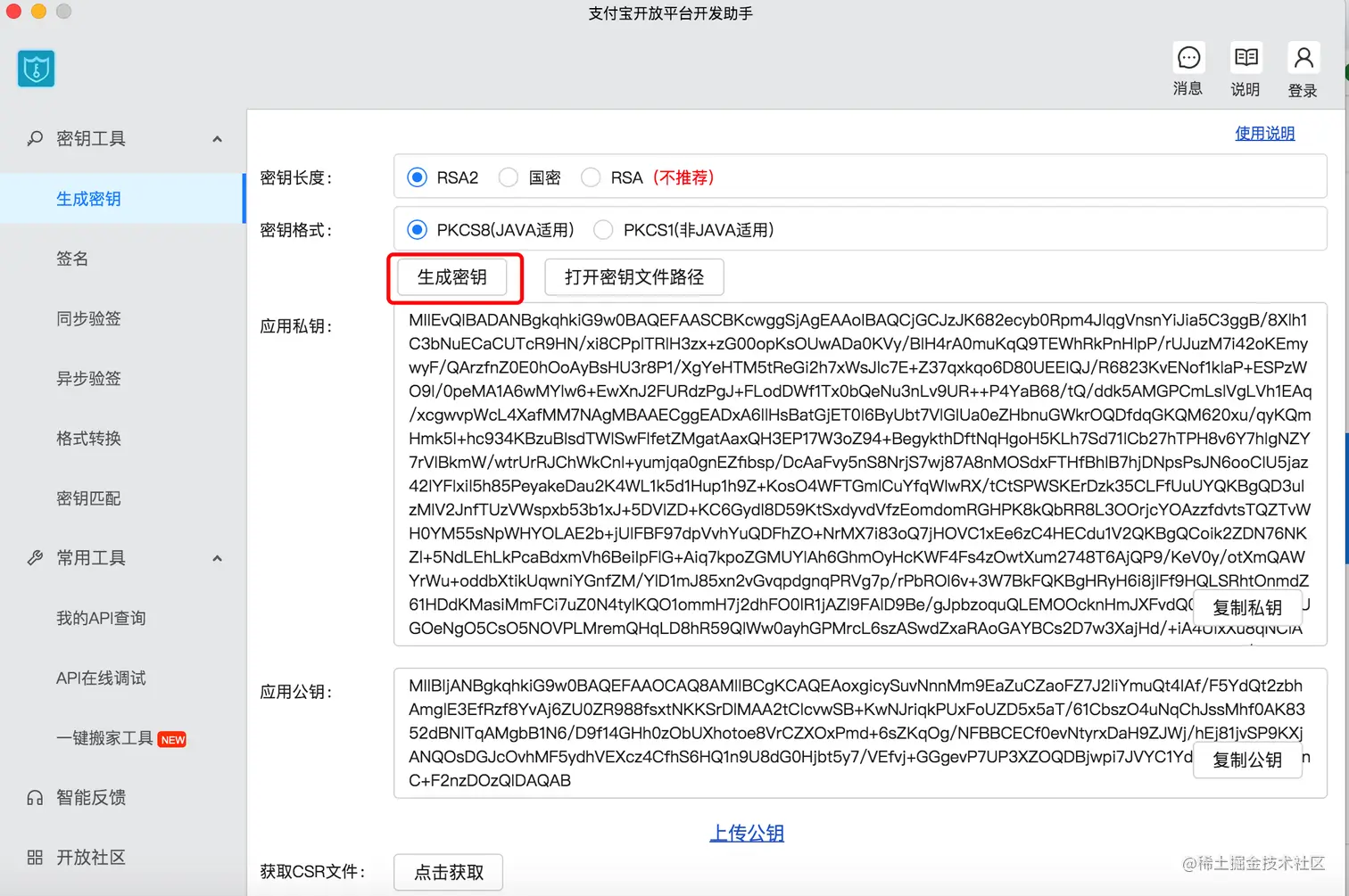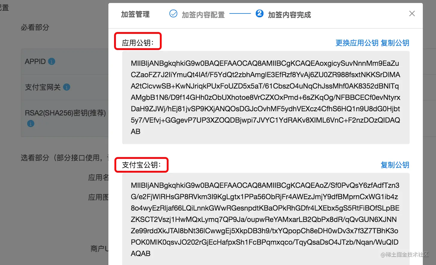 复制公钥到AlipayConfig类中的alipay_public_key。