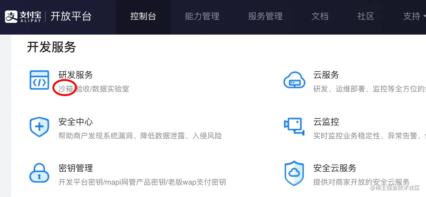 注册地址:open.alipay.com ,用你的支付宝账号扫码登录,完善个人信息,选择服务类型(自测选择自研)。